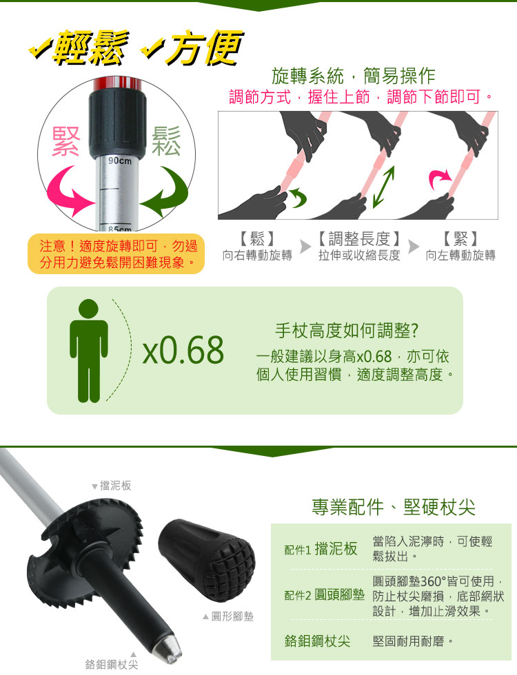 1.此杖除作為登山、健走、徒步旅行用途之外,請勿做為其他用途。
