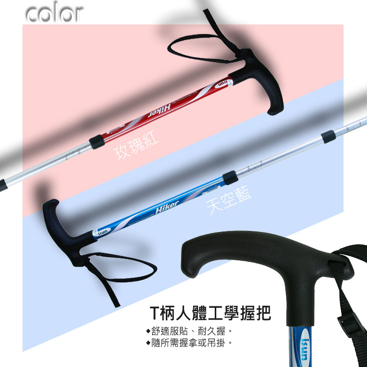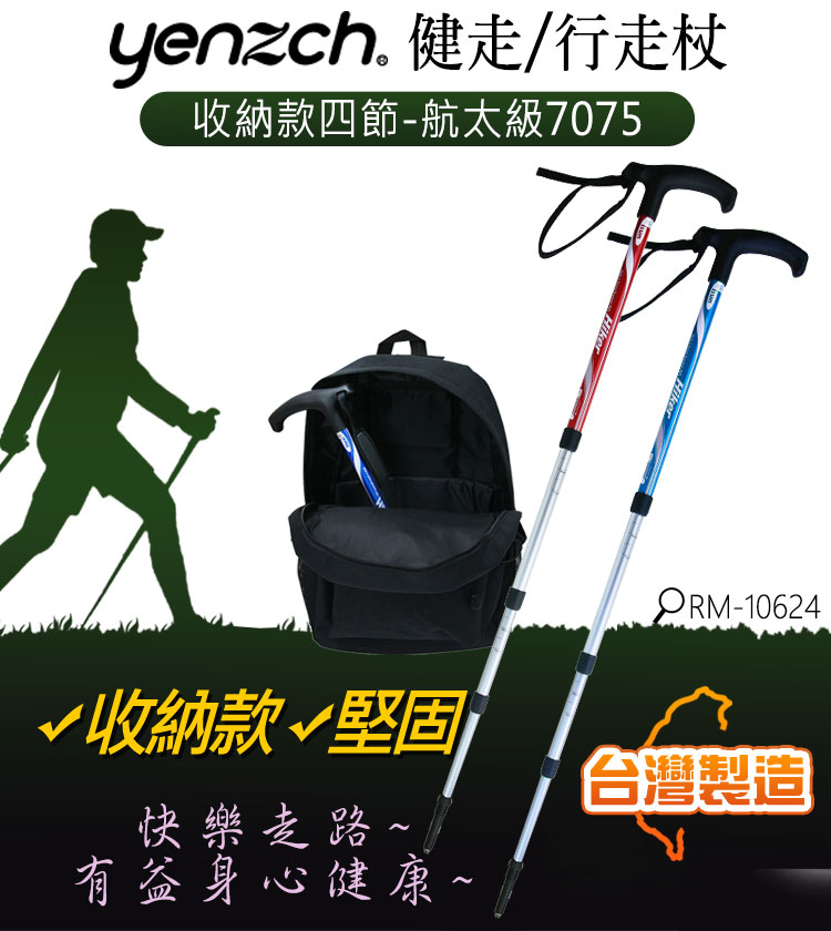 品名:Yenzch 健走/行走杖/收納款四節 7075航太級/T柄