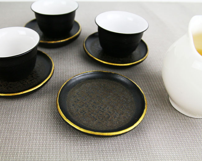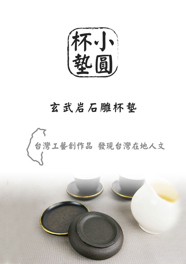◆玄武岩日式石雕圓杯墊,台灣工藝創作品