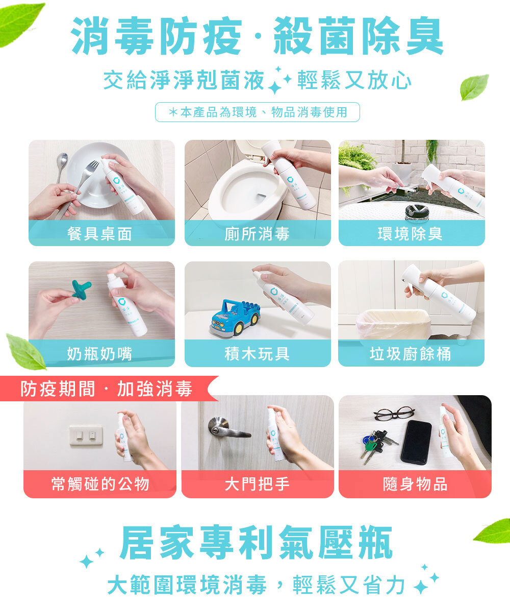 使用方式:噴灑於其環境、物品上,物品擦乾後即可直接使用。