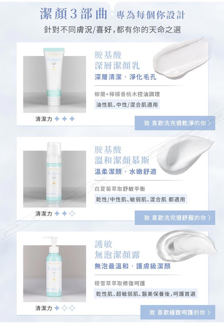 - ● 極致溫和無泡潔顏科技,保養級凝露質地,絲滑好推好沖洗