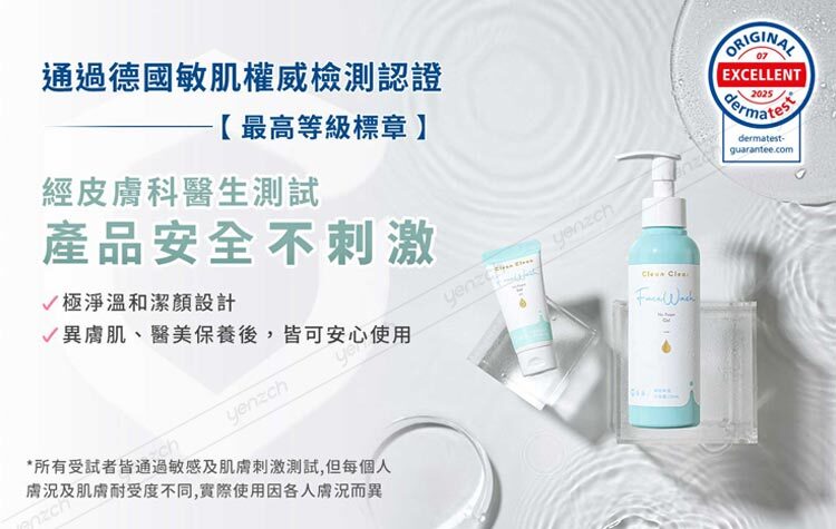 通過德國敏肌權威檢驗認證-最高等級標章、通過亞洲專業皮膚科研究機構-人體測試100%無不良反應。
