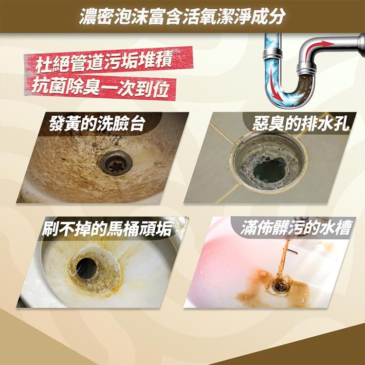 ◆濃密泡沫、活氧潔淨成分,有效分解堵塞源頭