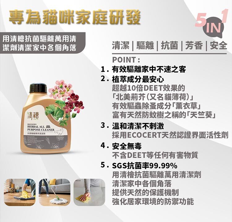 ◆清潔、驅離、抗菌、芳香、安全 5in1