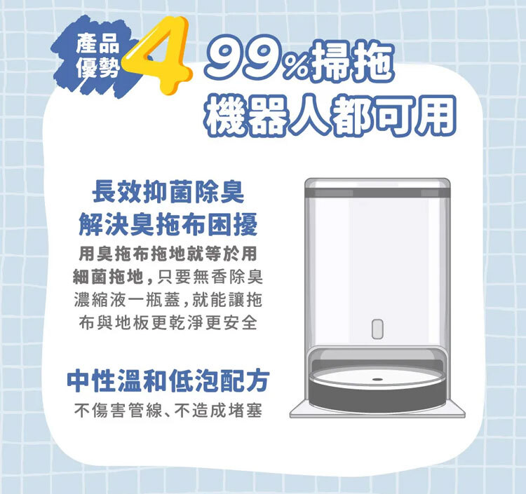 新增【除甲醛】功效,黏度降低接近水狀,適合99%的『掃拖機器人』拖地使用!