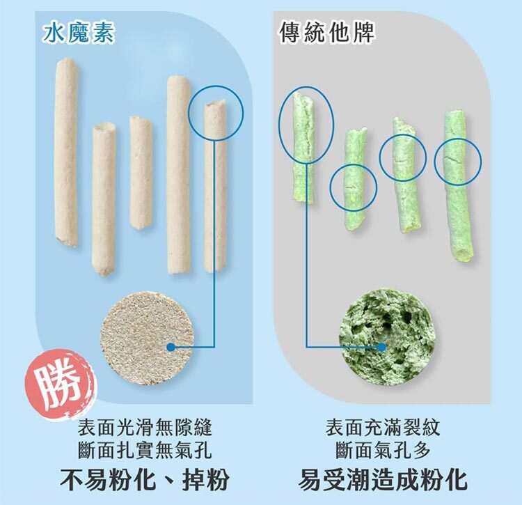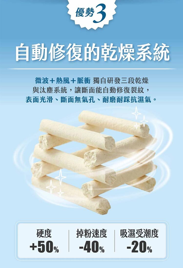 ✔ 抗粉化|特殊加壓製程,讓貓砂更緊實