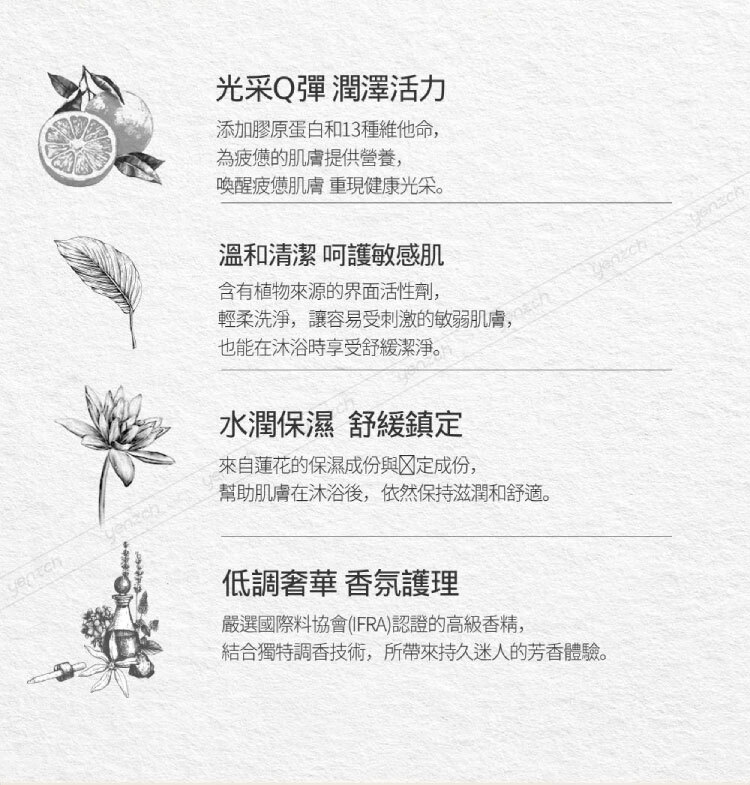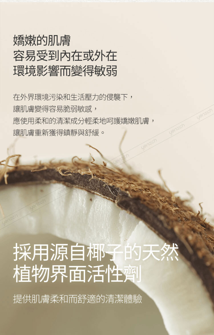 含多種天然植物萃取精華,溫和無刺激深層清潔污垢