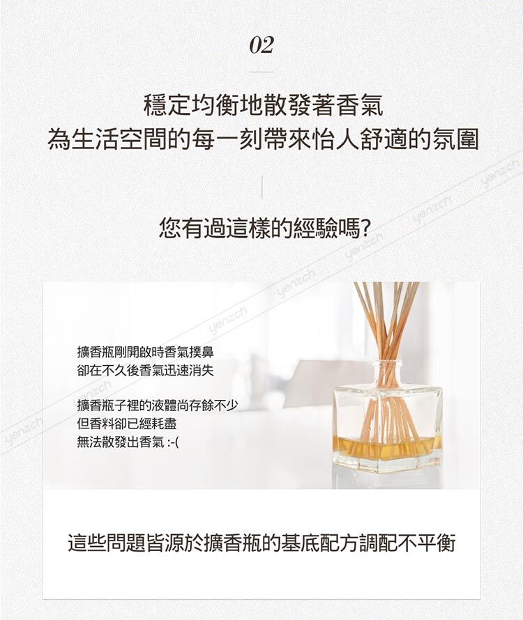 若覺得香味不夠再增加擴香棒數量,因為擴香香味會因人對氣味的感受不同以及室內空間大小而異
