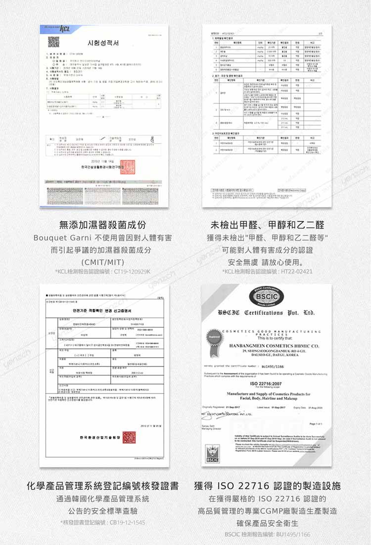 ◆韓國建設生活環境試驗研究院(KCL)自我檢驗,完成認證