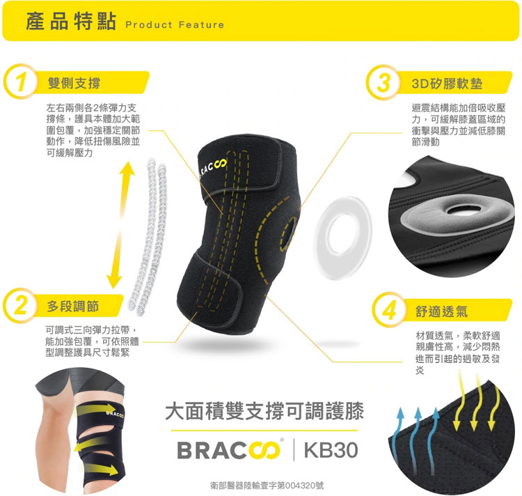 品名:美國Bracoo 奔酷/大面積雙支撐可調護膝 (KB30)