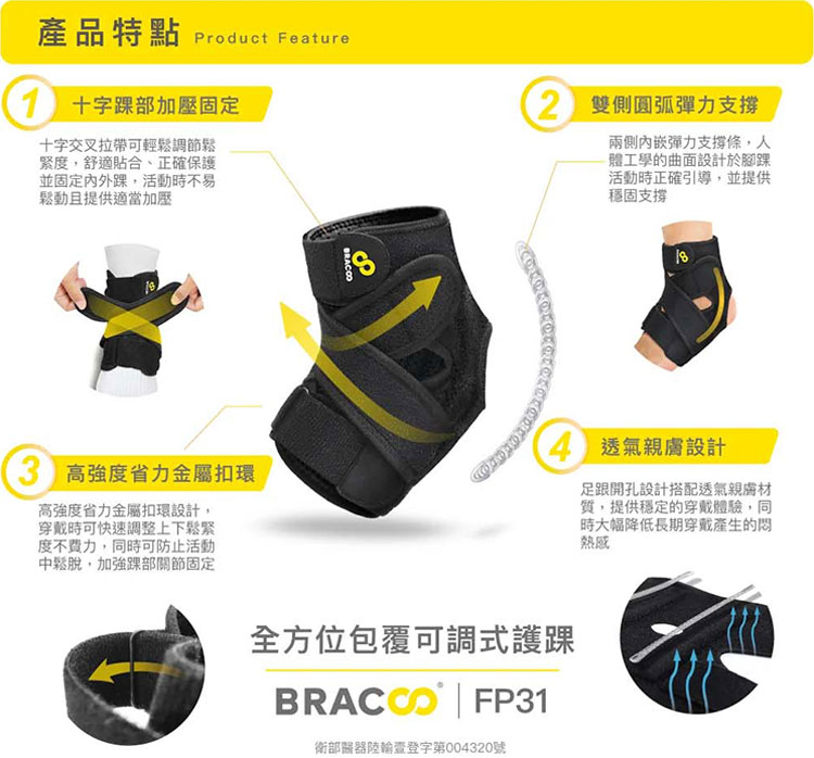 品名:美國Bracoo 奔酷/全方位包覆可調式護踝(FP31)