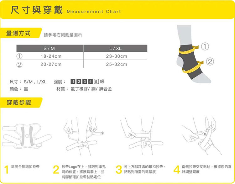 S/M適用尺寸腳踝圍18~24cm、腳掌圍20~27cm