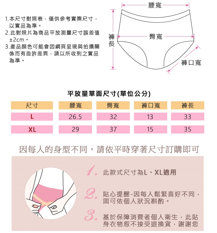 基於保障消費者個人衛生,此貼身衣物恕不接受退換貨,謝謝您!